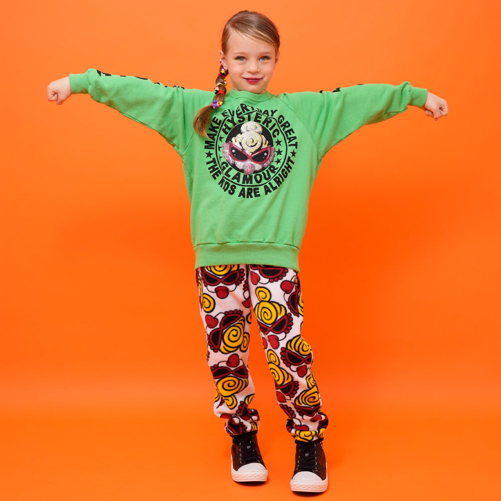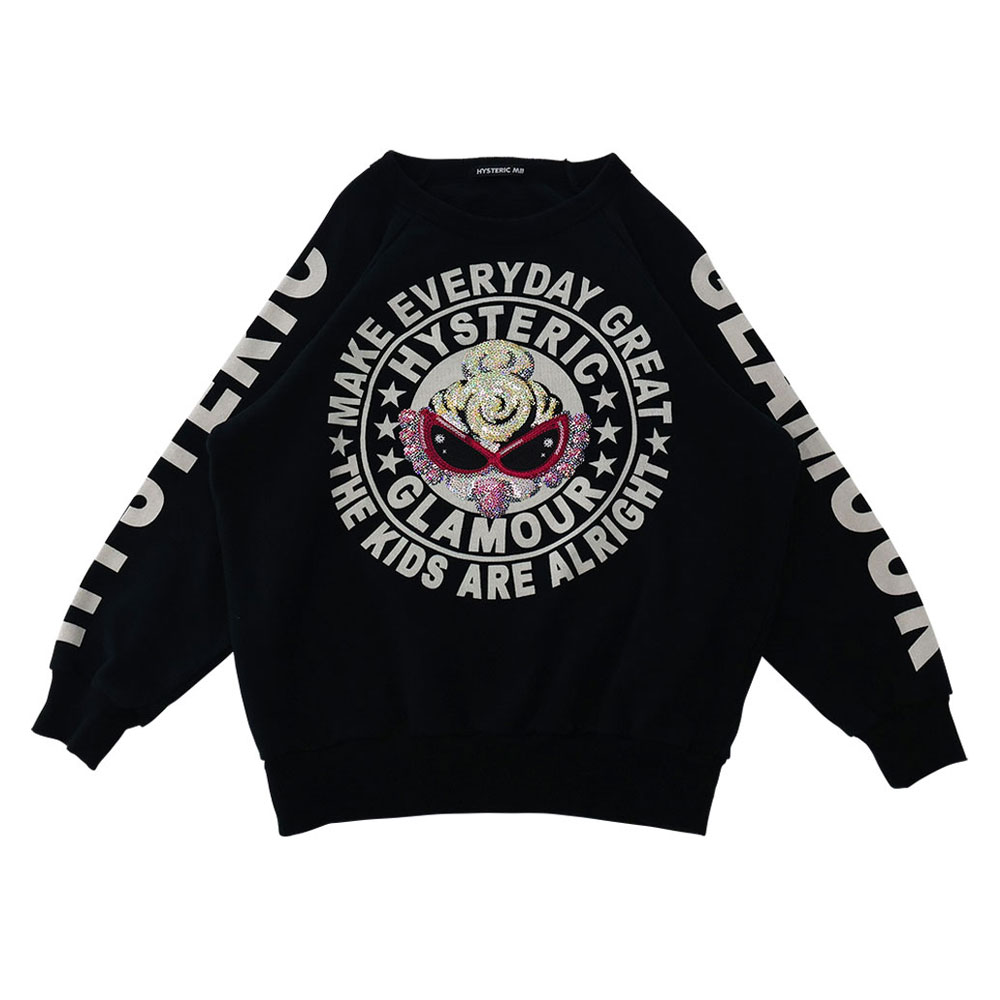 > Hystericmini スパンコール MINI FACE裏毛トレーナー