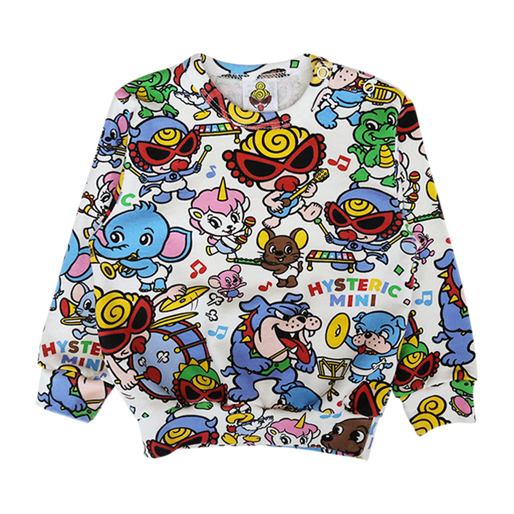 > MY FIRST HYSTERIC HYS-MINI BAND CLUB総柄 裏毛トレーナー