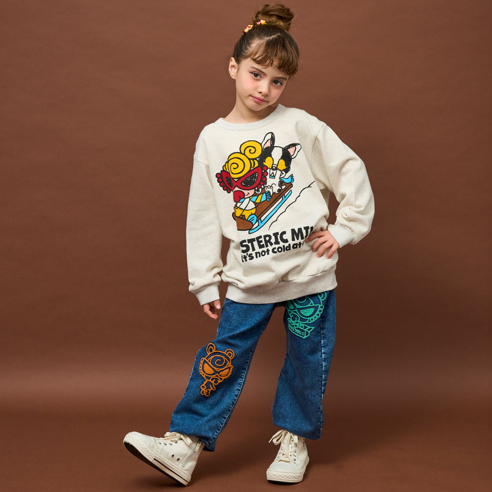 > MY FIRST HYSTERIC ストレッチニットデニム SELFISH BABY刺繍入り 10分丈パンツ