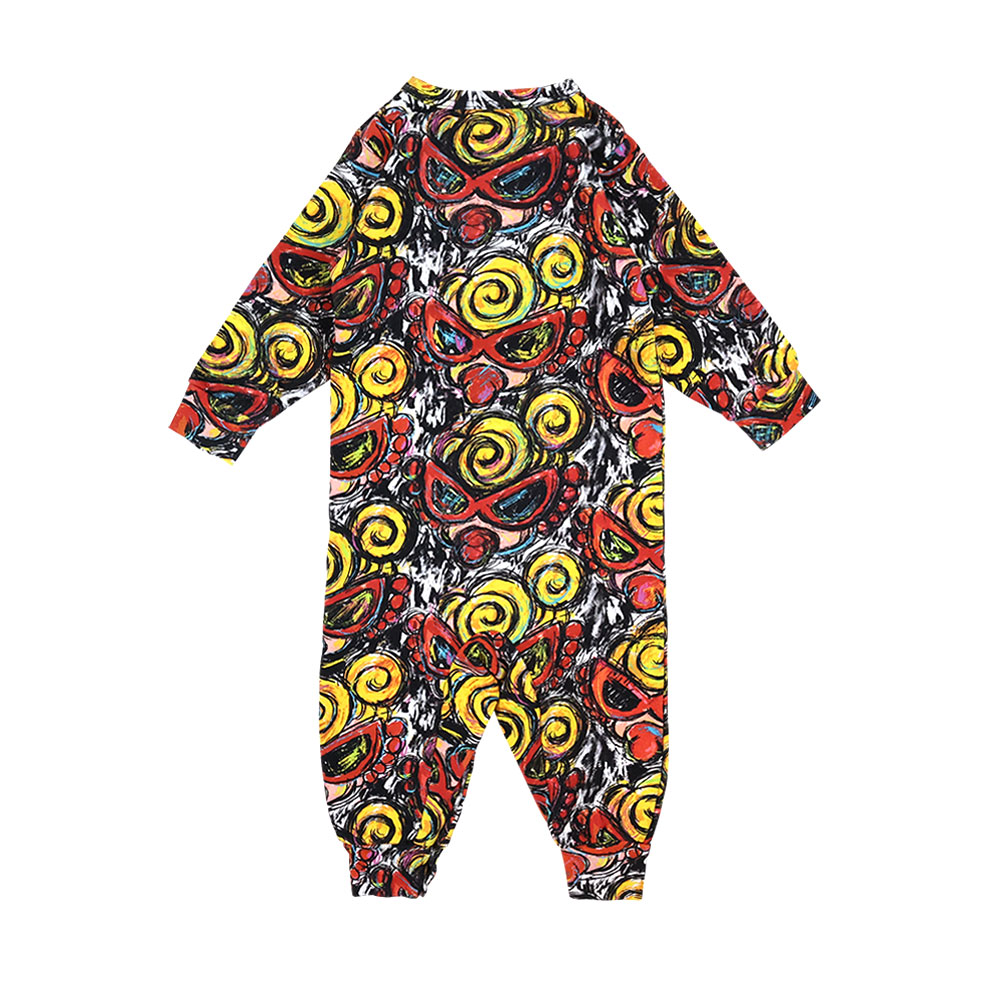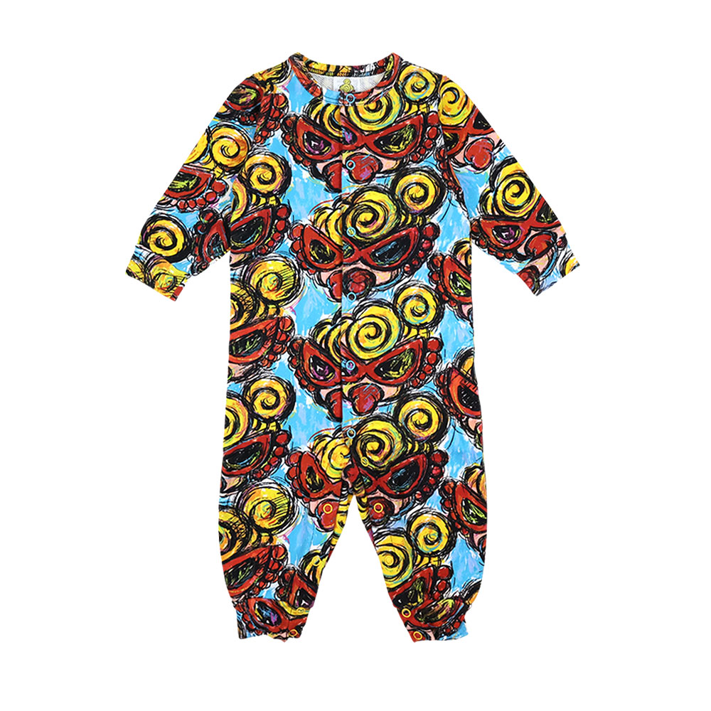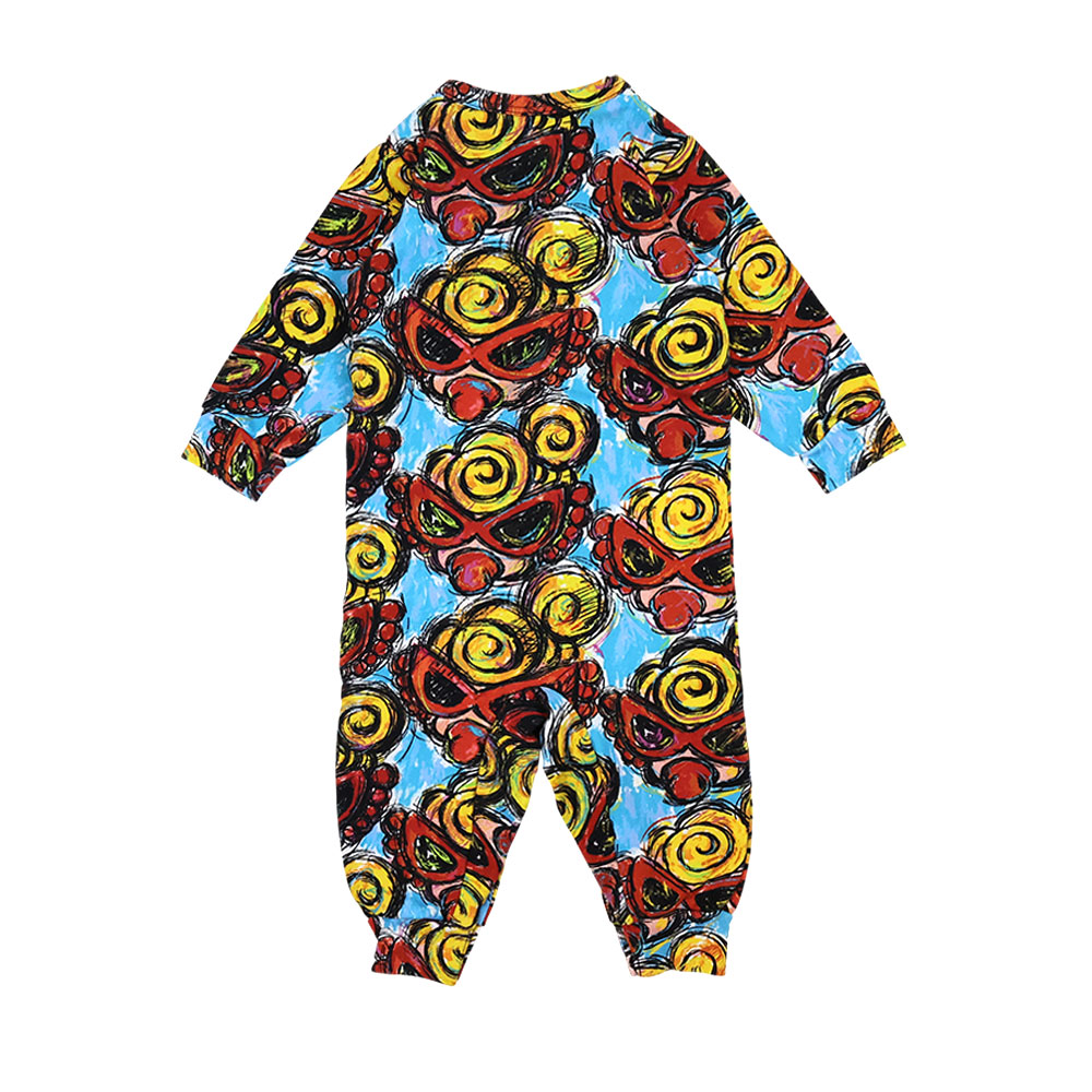 > MY FIRST HYSTERIC CHACOAL MINI FACE総柄 裏毛カバーオール